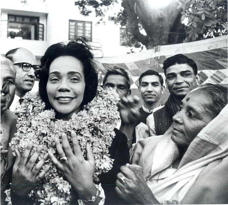 Coretta Scott King, wife of U.S. Civil Rights Leader Martin Luther King, Jr., receiving the Jawaharlal Nehru Award for International Understanding for the year 1966 on behalf of her husband, from Dr. Zakir Hussain, President of India, on January 24, 1969.